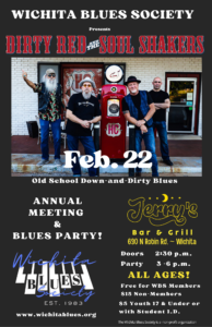 Join us for our Annual Meeting & Blues Party where we will give a state of the union for the organization, spend time with fellow blues fans, and boogie to Dirty Red & the Soul ShakerThis is an All Ages Show! Doors at 2:30 p.m. Music at 3 p.m.