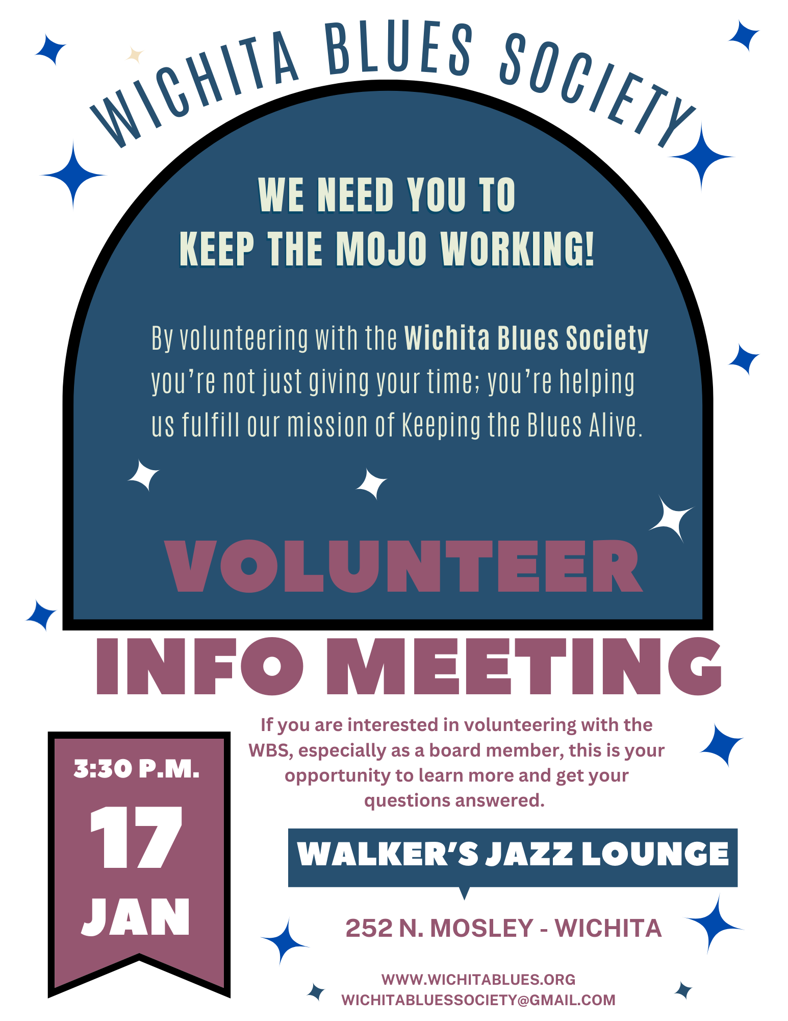 Sat17Jan20263:30 pmWalker's Jazz LoungeWe need your talent to help us Keep the Blues Alive! Right now 6 people are keeping this organization running, and we need several more to keep things going.