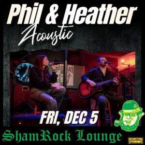 We love it when Phil Bollig and Heather Bruno team up for the Shamrock’s After Work Party. They’re playing some great tunes, acoustic-style, on the stage. Show is free.